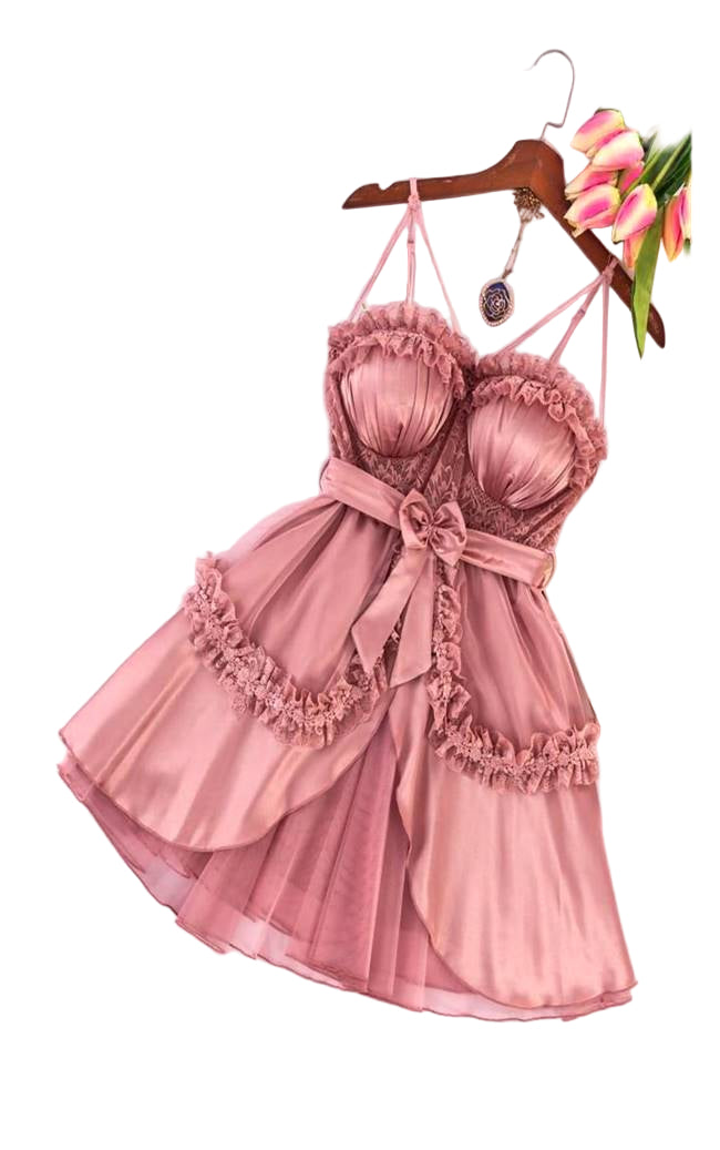 لانچيرى قصير من خامة الستان الناعمة واللامعة بتصميم مختلف ومميز لإطلالة انثوية ناعمة